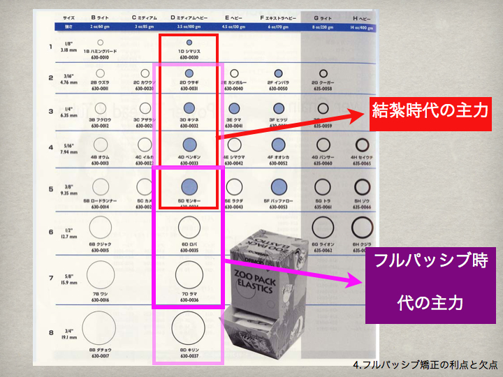 従来の矯正治療で使用するエラスティックよりも大きめのもので効果が得られます。理論値に近いフォースです。